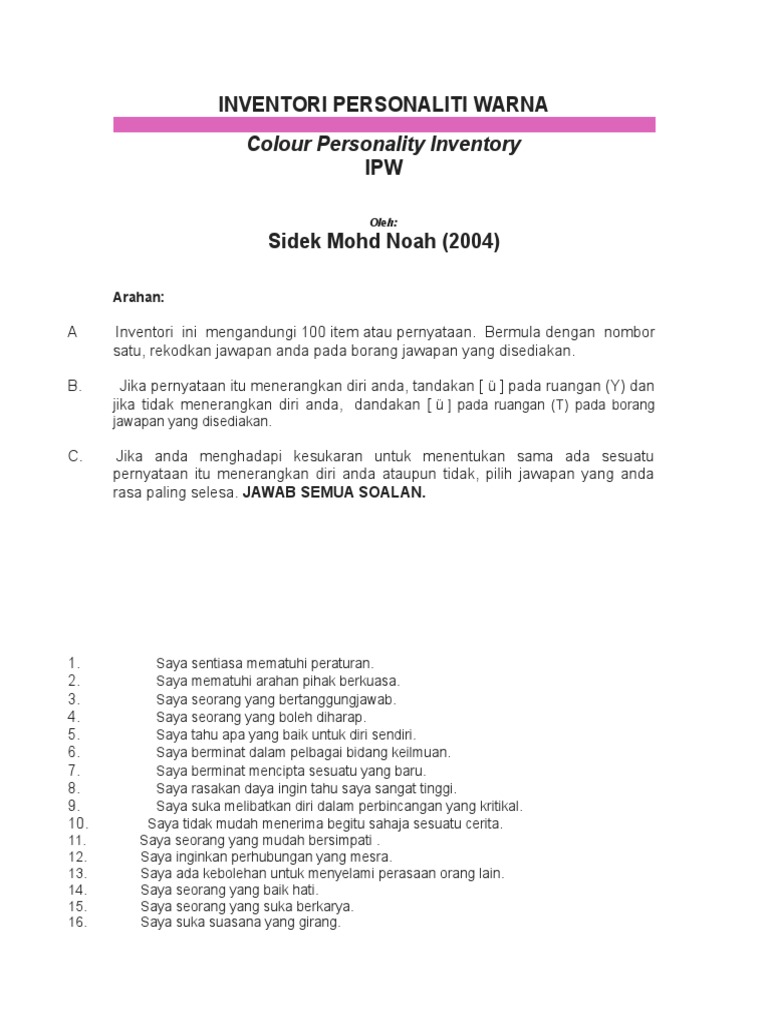 Inventori Personaliti Warna Sidek : Interpretasi Ipw Inventori Personaliti Warna / We did not find results for:. Check spelling or type a new query. We did not find results for: Maybe you would like to learn more about one of these?